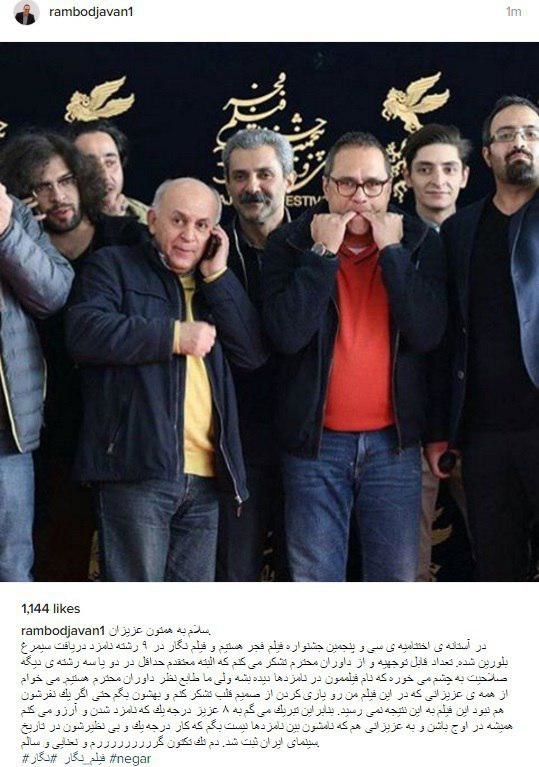 واکنش رامبد جوان به آرای هیئت داوران جشنواره فجر+ عکس