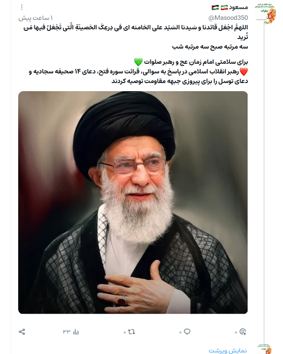توجه به موضوع ولایت مداری و دفاع از ولی به مدد الهی و تاسی جوانان این مرز و بوم، در قلوب آحاد مردم فهیم و ولایت مدار ایران اسلامی تبلور یافته و می رود به اذن خدای منان و پیروی از ولی امر زمان، زمینه ساز تحقق عدل و مساوات در تمام عالم هستی شود.